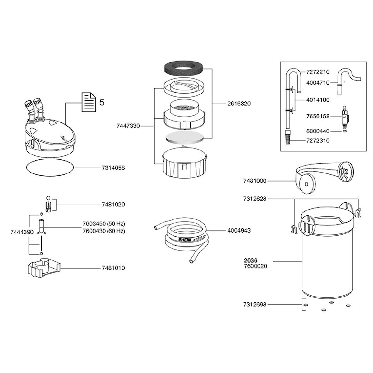 Also product contents include: 2 shut-off taps, outlet elbow, inlet pipe, EHEIM quality hose, installation accessories.